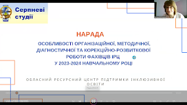 29.08.2023 педагогами КУ «Інклюзивно-ресурсний центр» Бердянської міської ради було проведено вебінар на тему «Реалізація індивідуальної траєкторії розвитку дітей з особливими освітніми потребами в 2023-2024 н.р. Співпраця інклюзивно-ресурсного центру з закладами освіти міста». Спікери: Тетяна МАЛУЄВА, директорка КУ «ІРЦ» БМР; Олена КІДАЛОВА та Тетяна ТХОРЕНКО, фахівці КУ «ІРЦ» БМР. На заході були присутні 62 педагогічних працівника ЗЗСО та ЗДО міста Бердянська та району.